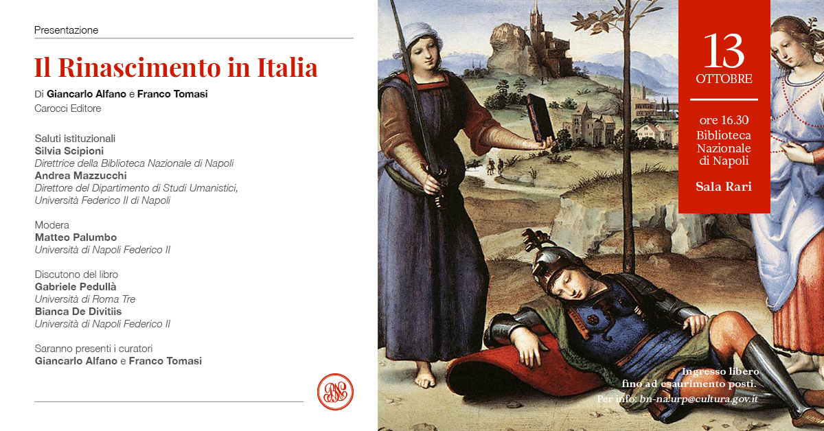 Il giorno 13 ottobre alle ore 16.30 sarà presentato nella Sala Rari della Biblioteca Nazionale di Napoli Il Rinascimento in Italia, a cura di Giancarlo Alfano e Franco Tomasi.